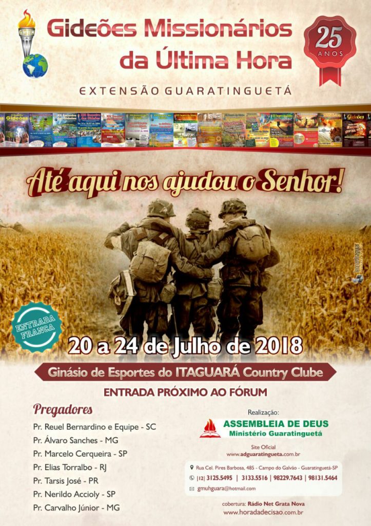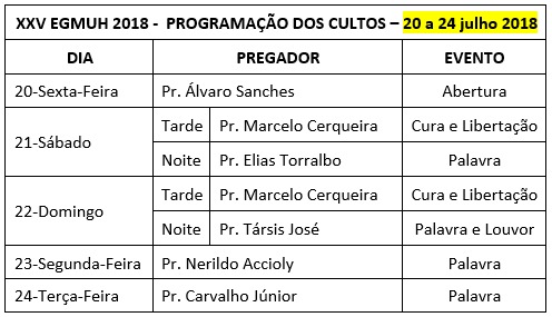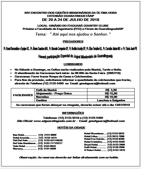 Amados irmãos em Cristo: Orem, divulguem e participem deste grande evento espiritual. “Cantai ao Senhor em toda a terra; anunciai de dia em dia a sua salvação (I Crônicas 16.26)”.
